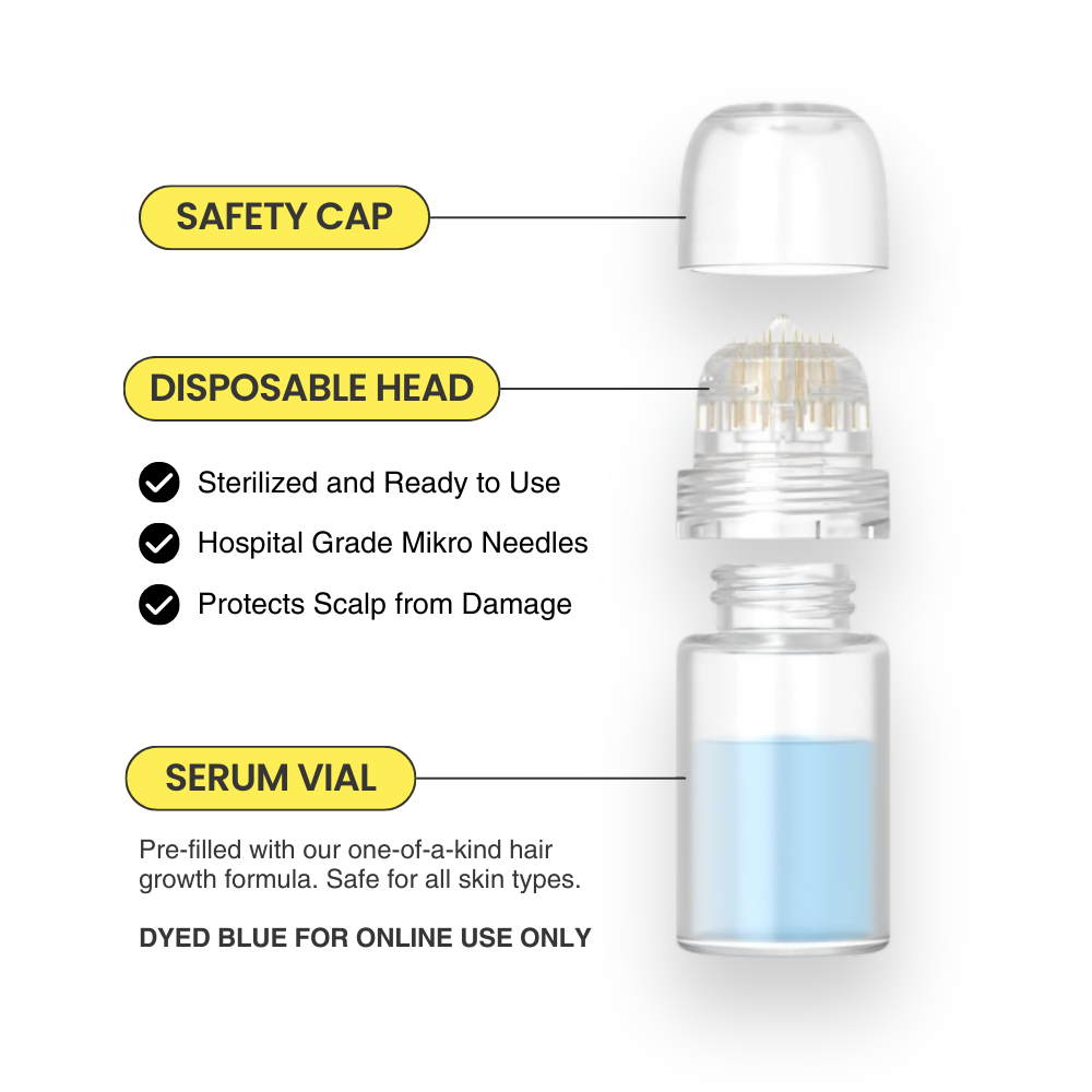 Use Use every 7-10 days for best results. Use the Mikro-Needling Device to gently stamp over the scalp, then massage the remaining serum into your scalp.